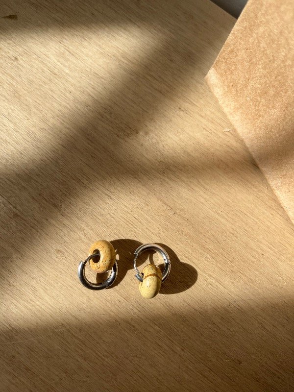 Aros que combinan donas de piedras naturales & argollitas de acero quirúrgico dorado / plateado.