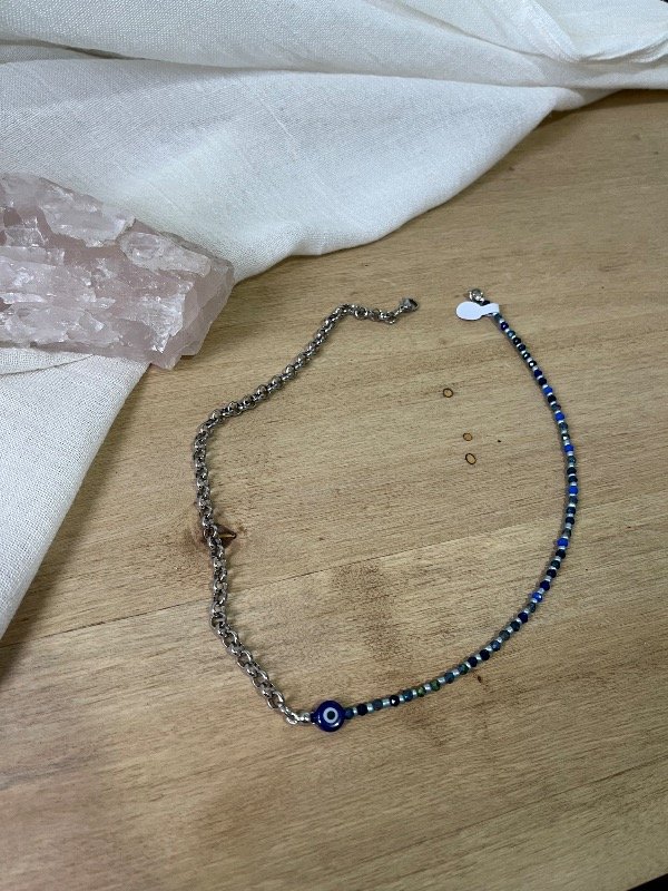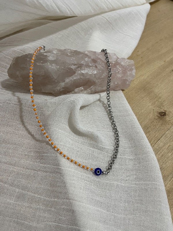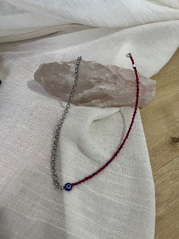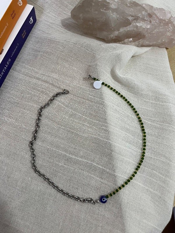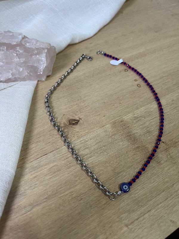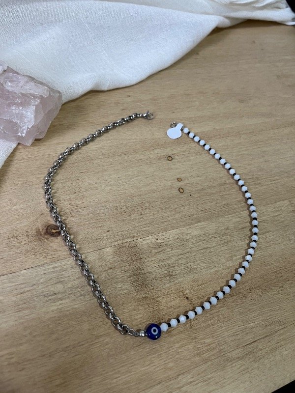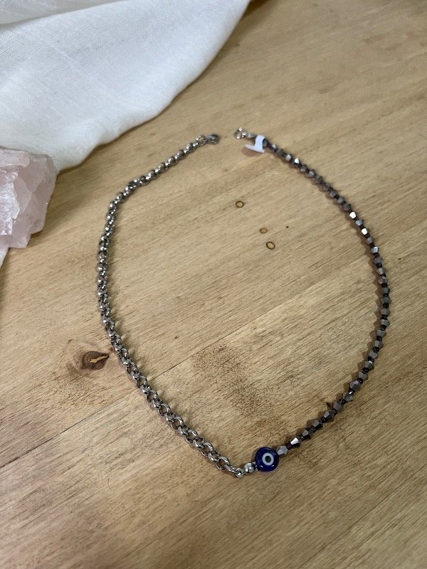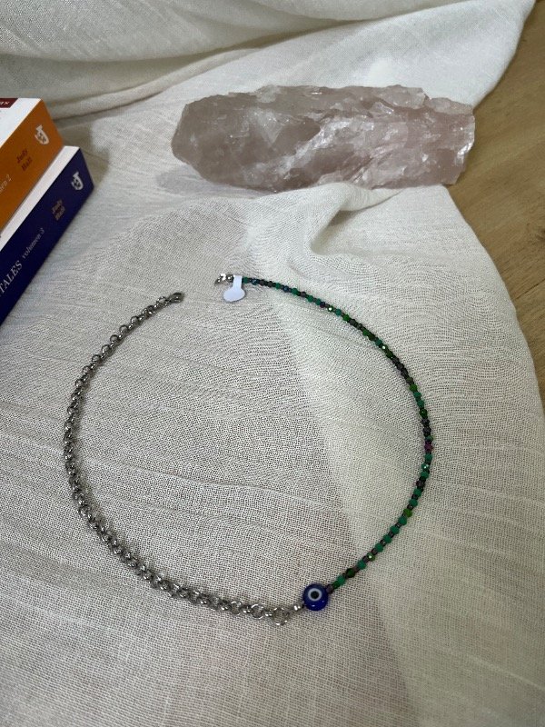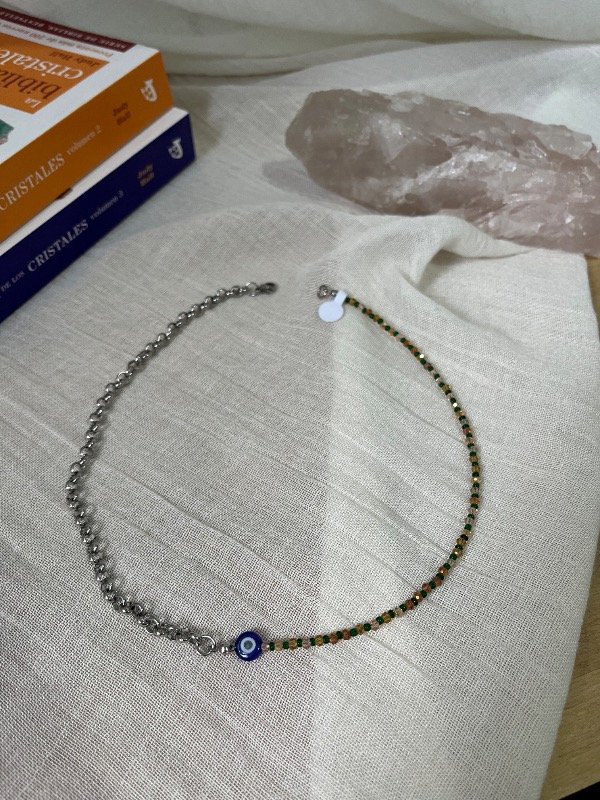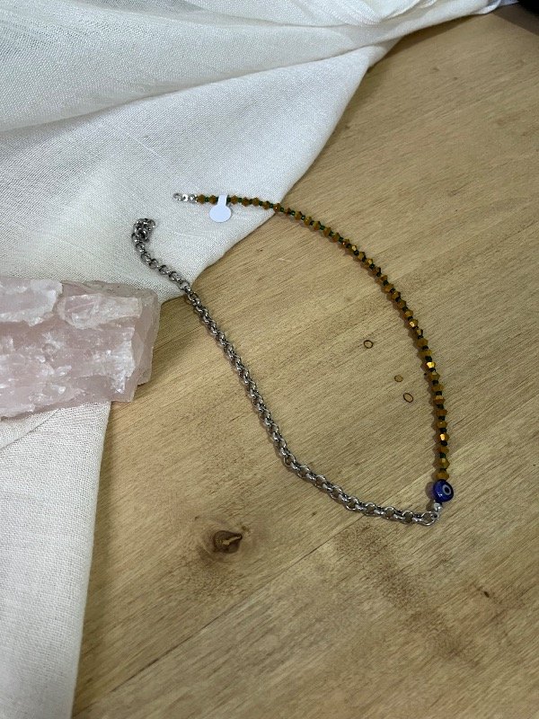Accesorio de acero quirúrgico combinado con cristal de roca y vidrio.