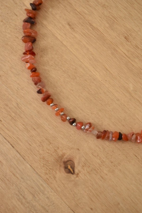 Accesorio de piedras naturales con terminación de acero quirúrgico -tapanudo, mosquetón y cadena de alargue-.