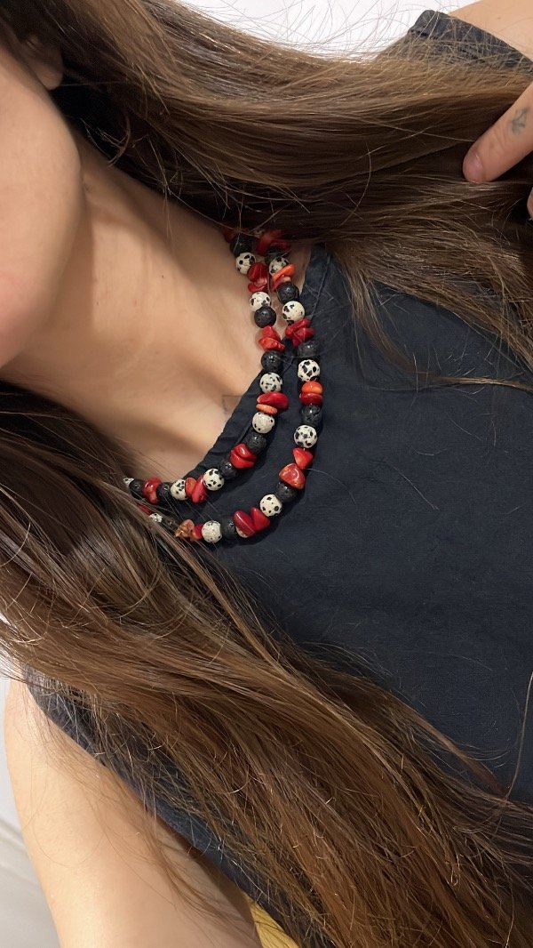 Accesorio de piedras naturales con terminaciones de acero quirúrgico -tapanudos, mosquetón y cadena de alargue-