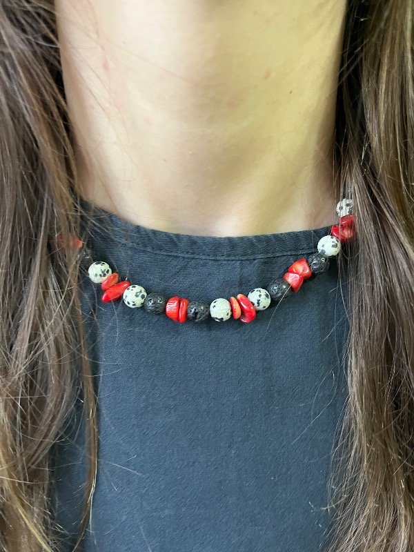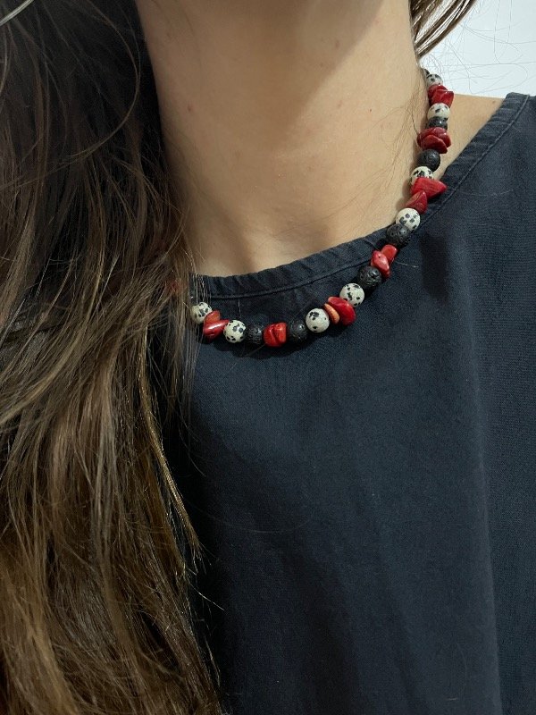 Accesorio de piedras naturales con terminaciones de acero quirúrgico -tapanudos, mosquetón y cadena de alargue-