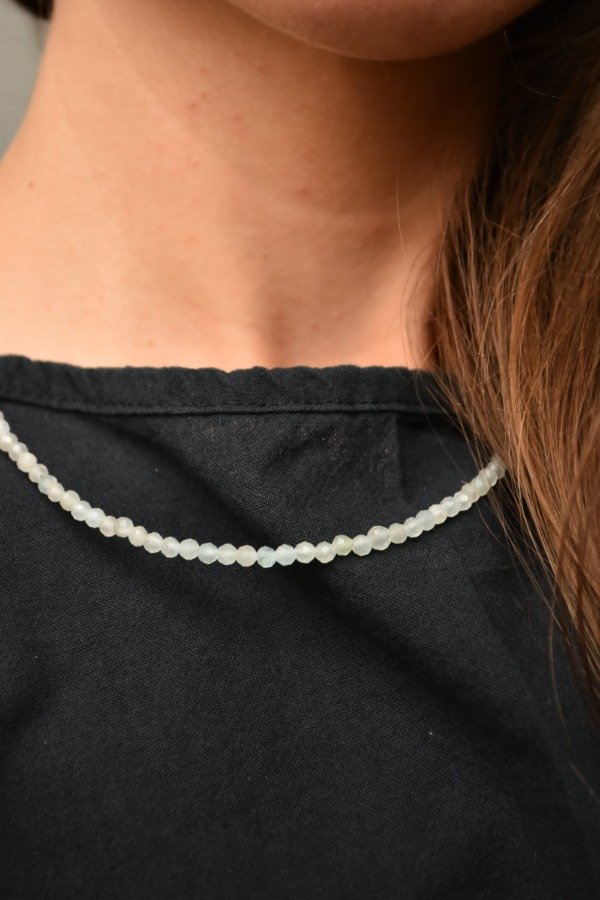 Accesorio de piedras naturales con terminaciones de acero quirúrgico -tapanudos, mosquetón y cadena de extensión.-