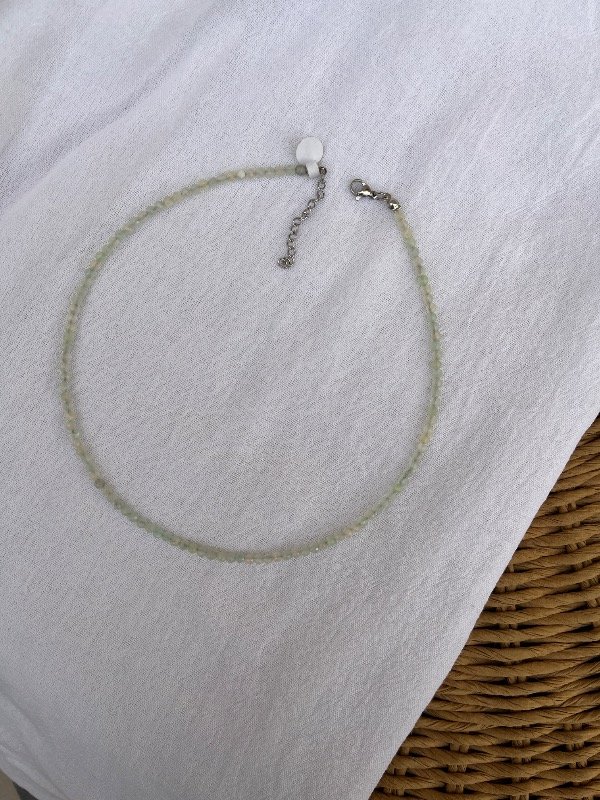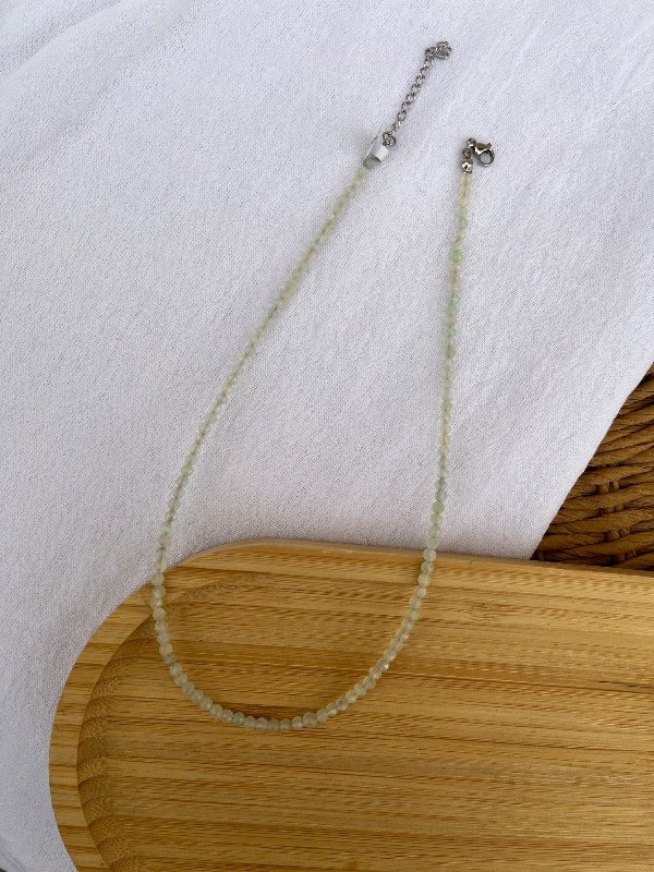 Accesorio de piedras naturales con terminaciones de acero quirúrgico -tapanudos, mosquetón y cadena de extensión.-