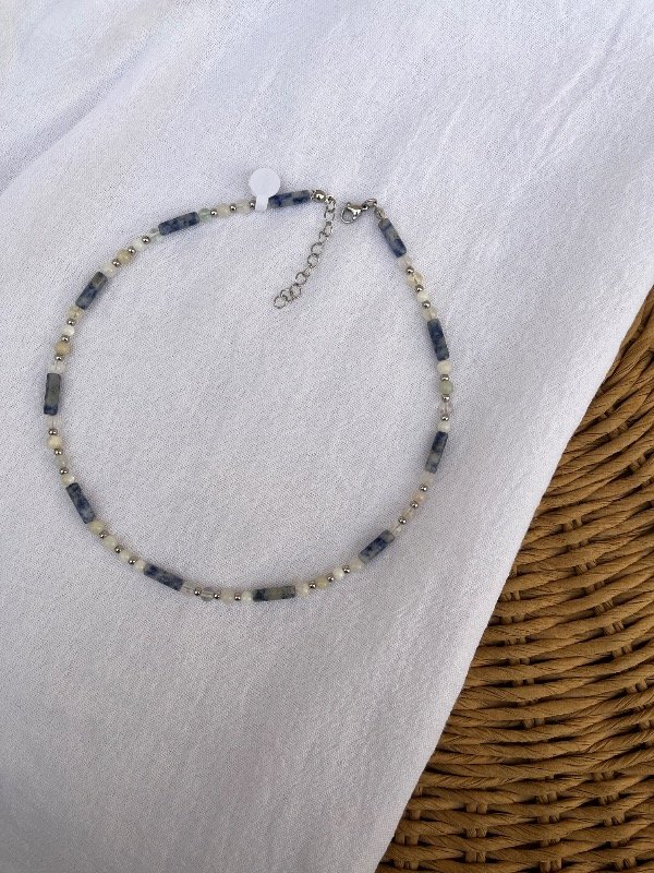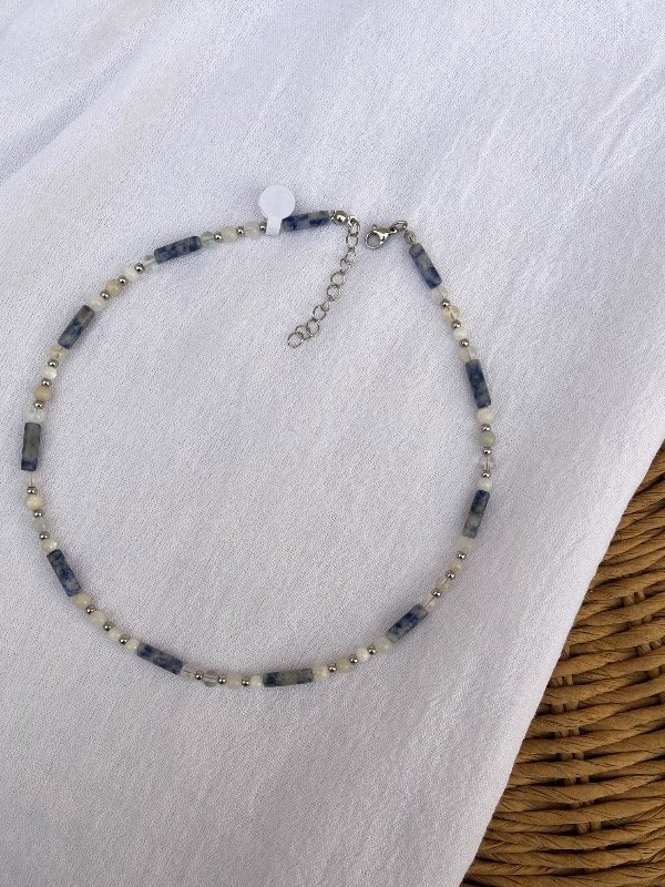 Accesorio de piedras naturales con terminación de acero quirúrgico -tapanudo, mosquetón y cadena de alargue-.