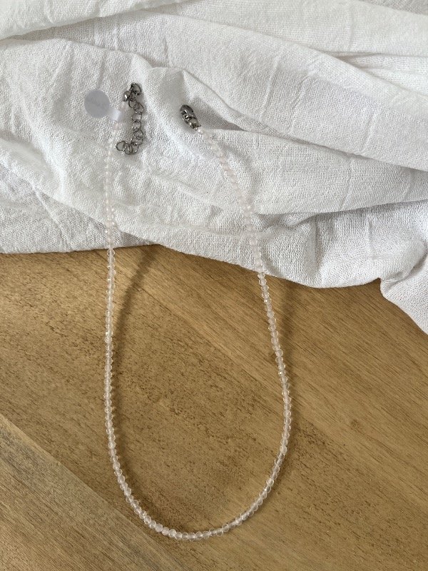 Accesorio de piedras naturales con terminaciones de acero quirúrgico -tapanudos, mosquetón y cadena de alargue-