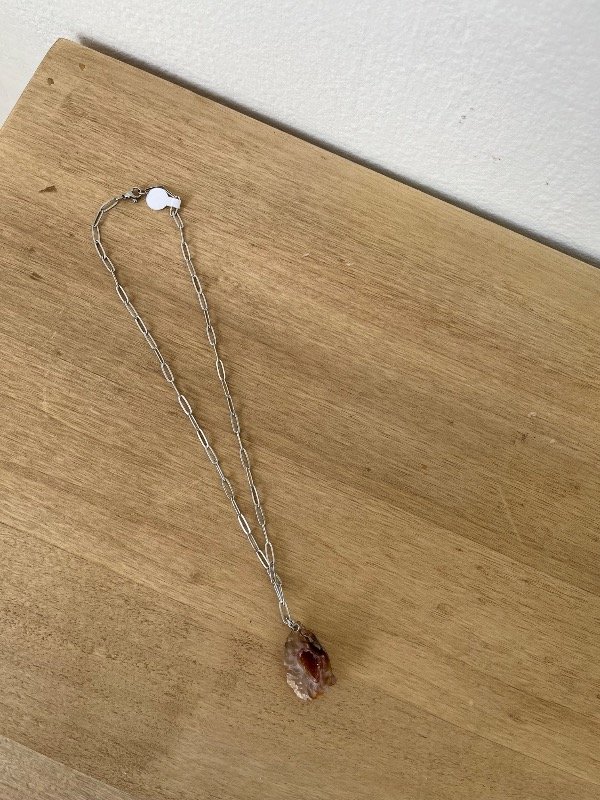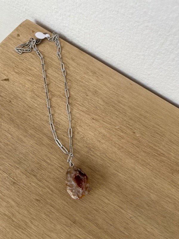Accesorio de piedras naturales con cadena de acero quirúrgico.