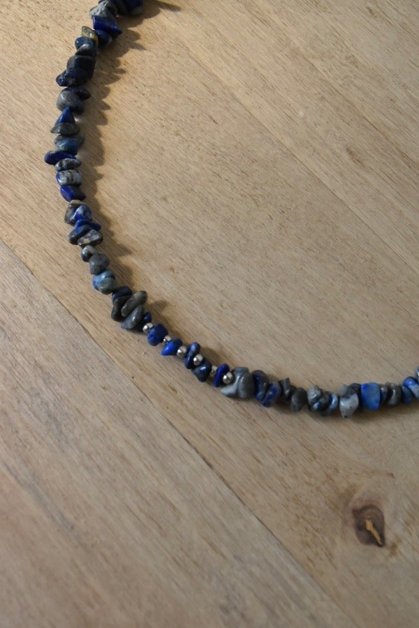 Accesorio de piedras naturales con terminación de acero quirúrgico -tapanudo, mosquetón y cadena de alargue-.