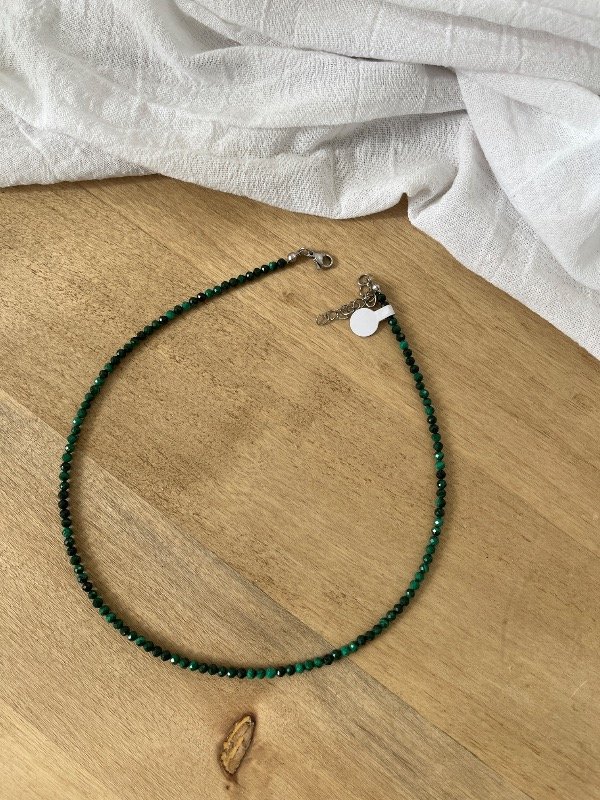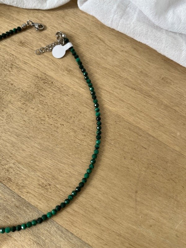 Accesorio de piedras naturales con terminaciones de acero quirúrgico -tapanudos, mosquetón y cadena de alargue-