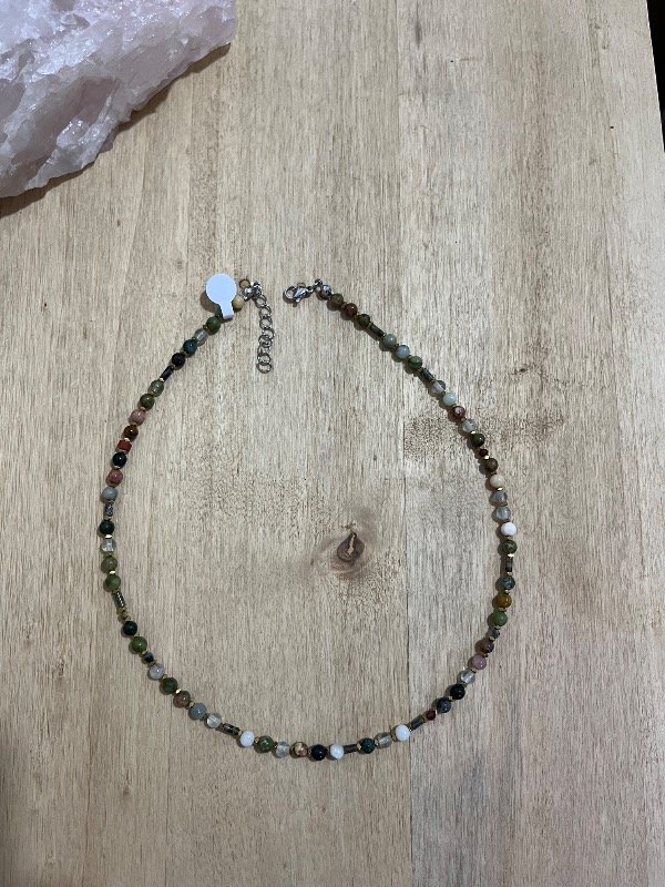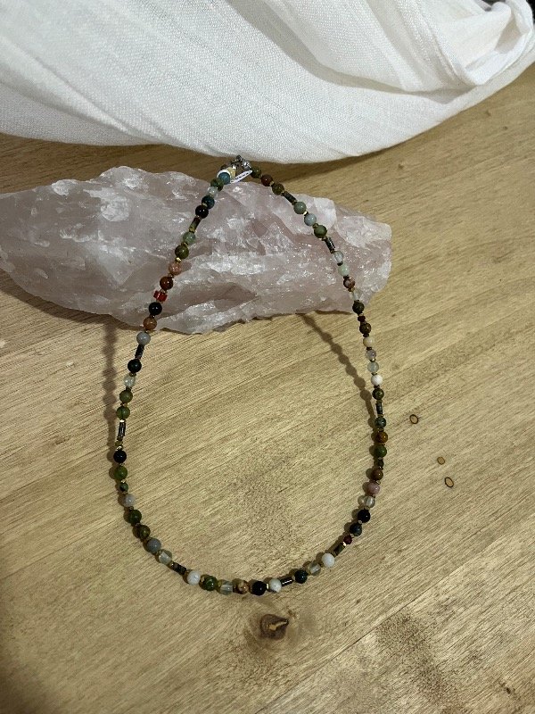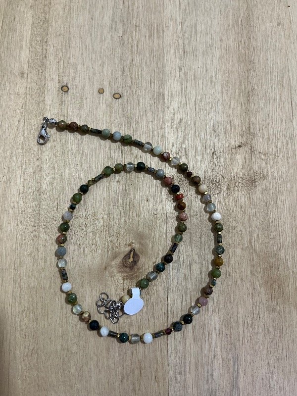 Accesorio de piedras naturales combinada con hematitas con terminaciones de acero quirúrgico -tapanudos, mosquetón y cadena de extensión.-