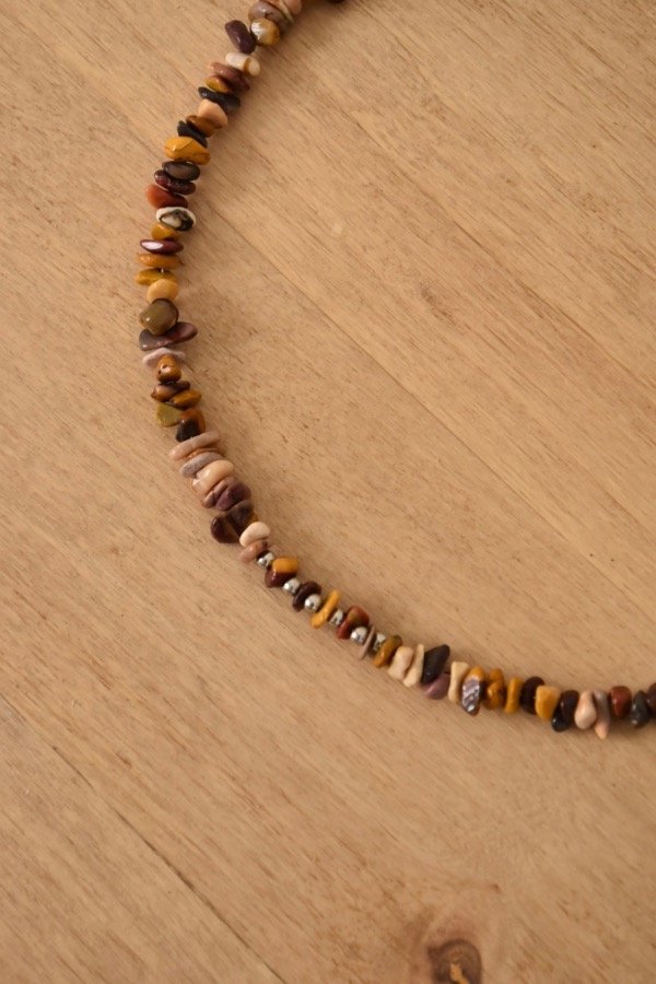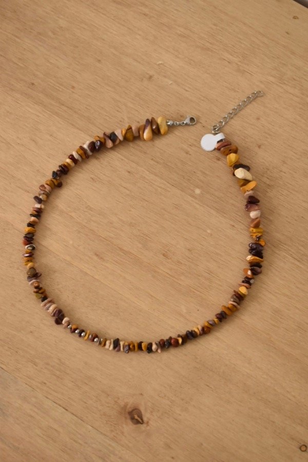 Accesorio de piedras naturales con terminación de acero quirúrgico -tapanudo, mosquetón y cadena de alargue-.