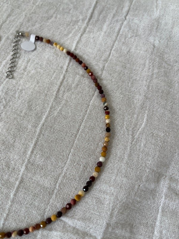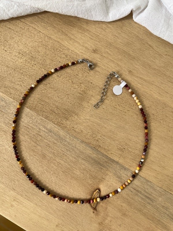 Accesorio de piedras naturales con terminaciones de acero quirúrgico -tapanudos, mosquetón y cadena de alargue-