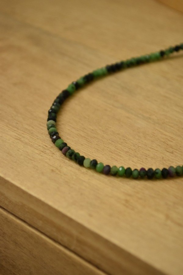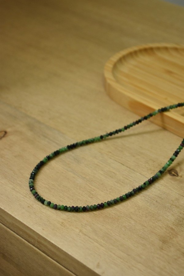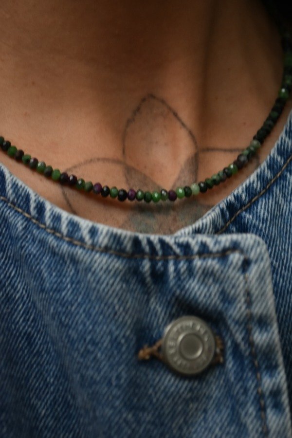 Accesorio de piedras naturales con terminaciones de acero quirúrgico -tapanudos, mosquetón y cadena de extensión.-