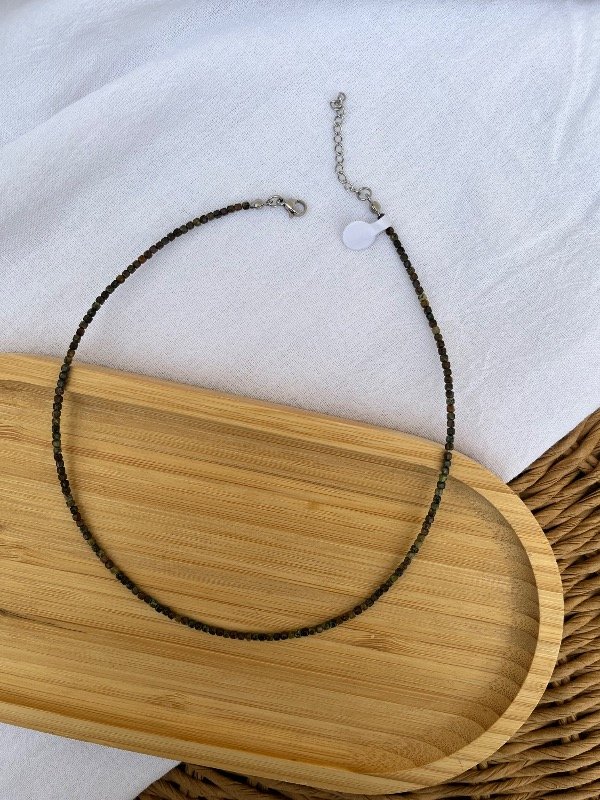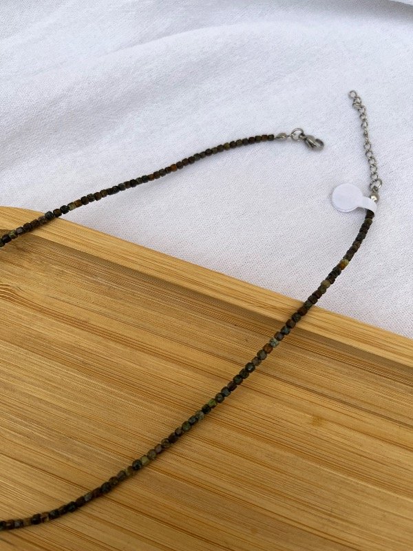 Accesorio de piedras naturales con terminación de acero quirúrgico -tapanudo, mosquetón y cadena de alargue-.