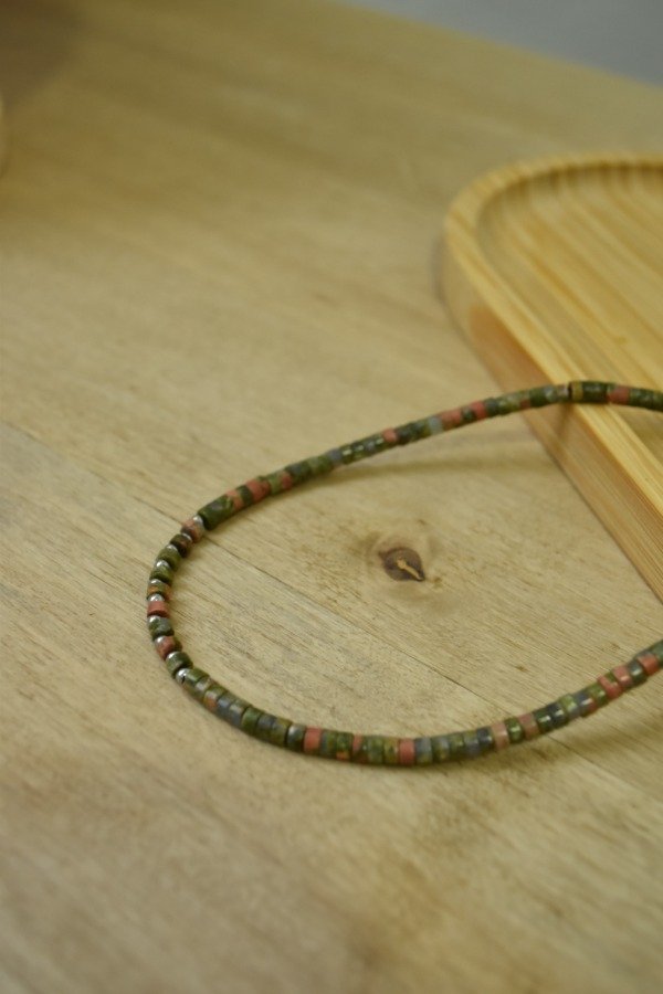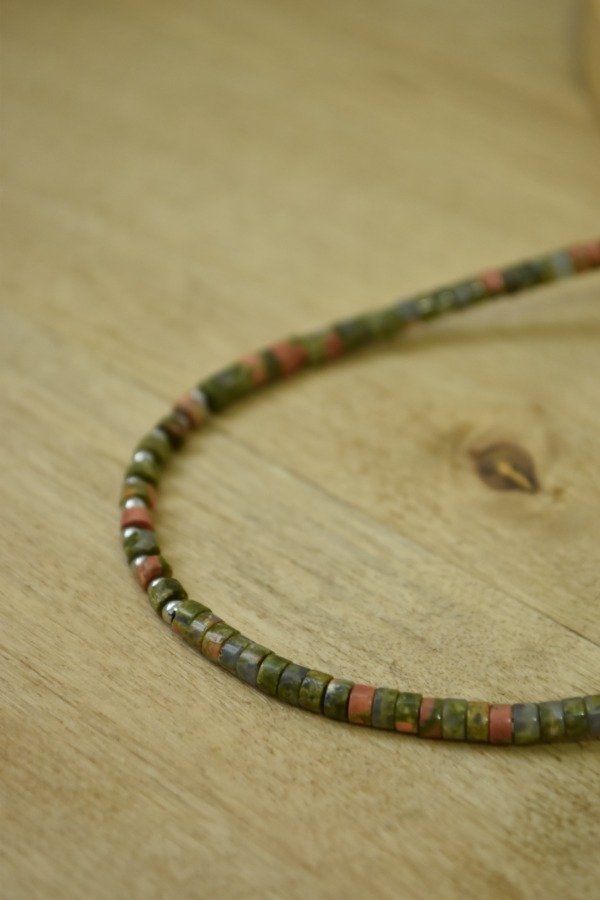 Accesorio de piedras naturales con terminaciones de acero quirúrgico -tapanudos, mosquetón y cadena de extensión.-