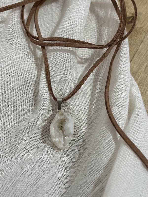 Accesorio de piedra natural combinada con portadije artesanal de plata 925 y gamuza.