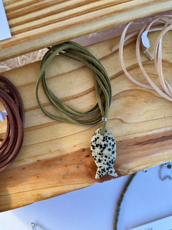 Accesorio de piedras naturales combinado con gamuza, para que lo ajustes a tu gusto!
